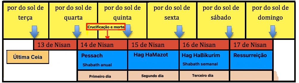 -A Última Ceia, foi na noite antes da Páscoa, por do sol de 14 de Nissan (terça-feira a noite)